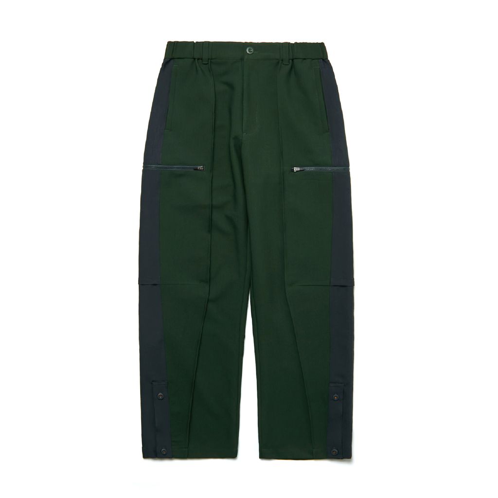 褲腳側邊排扣設定,撞色鈕扣車線配色,