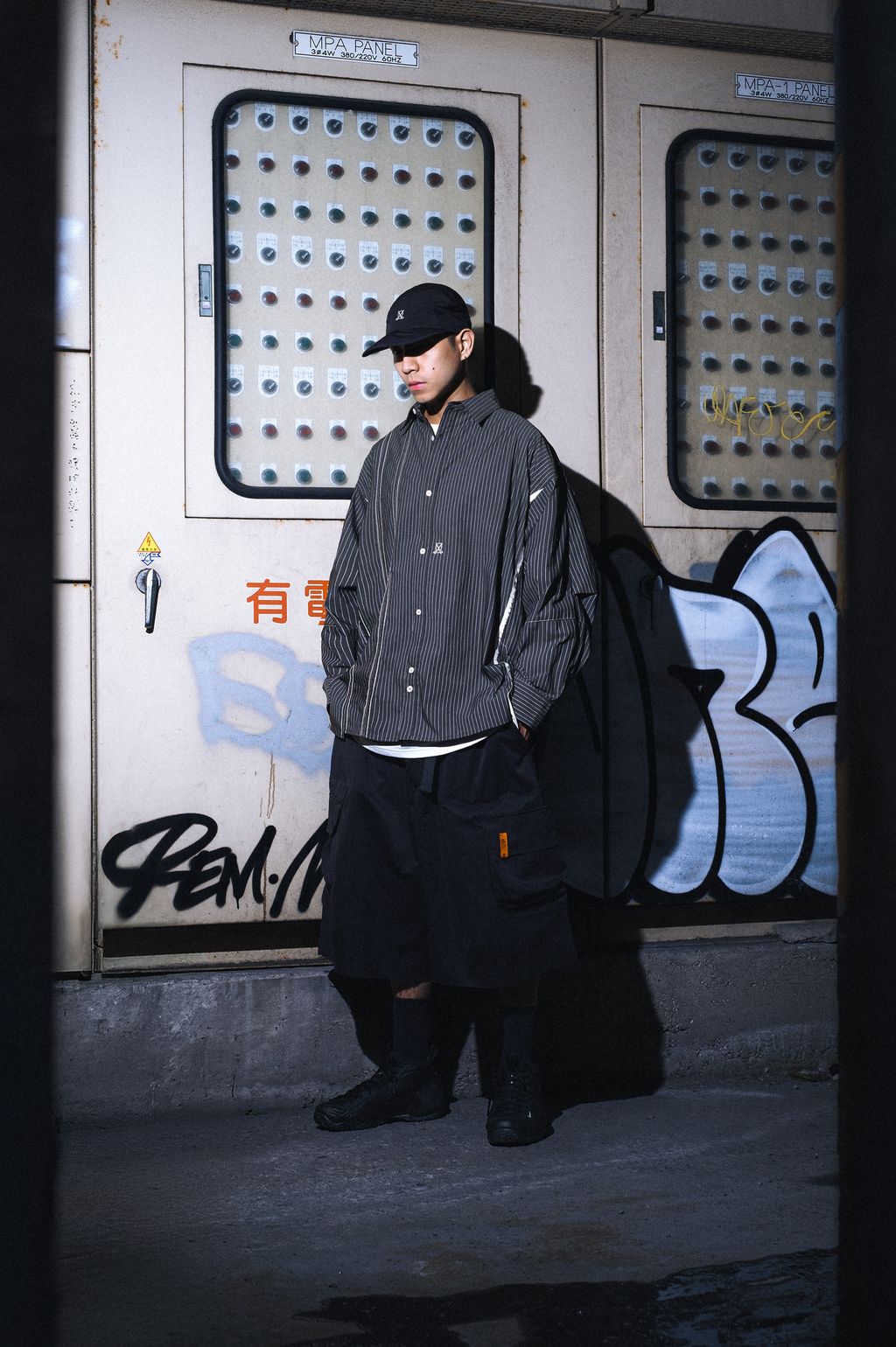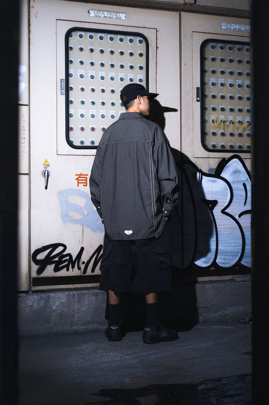 5:28/“ANEMONE” FLAG-STITCHING BIG SHIRTWLOFSD改良定番條紋寬鬆襯衫款式,匯集擅長的設計手法,延續標誌性的寬鬆襯衫輪廓,以不對稱外觀堆疊細節,透過前身多裁片設計結合跳色車線手法,透過布花條紋與鎖鏈相間車線交錯,形成兩種形式條紋組合的外觀結構,並保留WLOFSD經典的襯衫定番剪裁細節,呈現品牌調性的街頭襯衫款式。